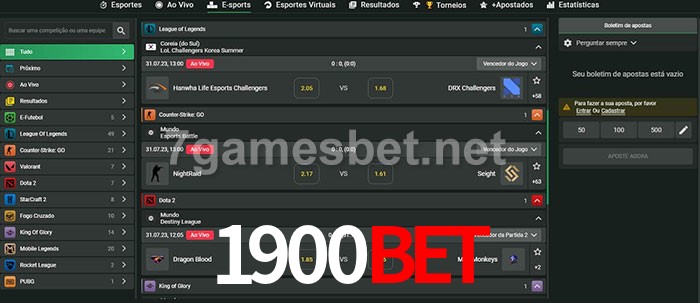 O 1900Bet oferece uma grande seleção de opções de apostas em e-sports com probabilidades competitivas